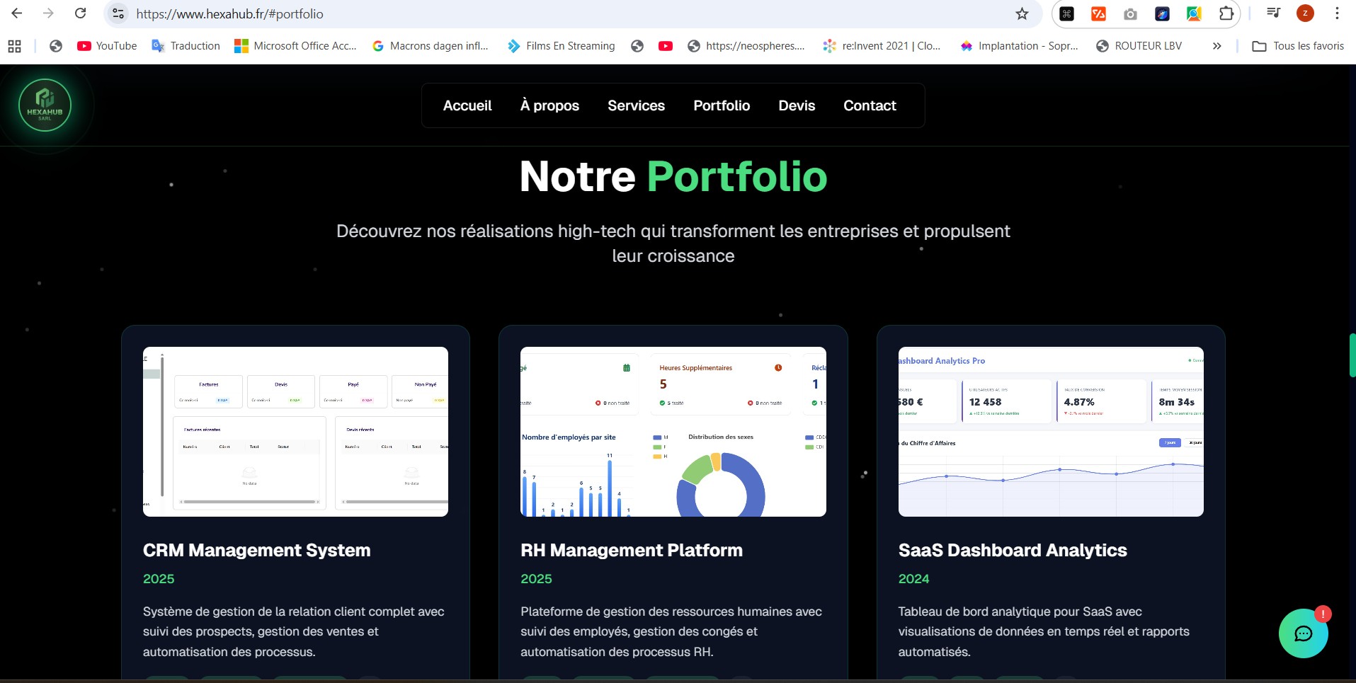 Fort de ces expériences, j’ai fondé ma propre société, HexaHub, où je propose aujourd’hui des solutions modernes, performantes et adaptées aux besoins actuels des entreprises.